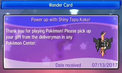 Está ocorrendo neste momento, um evento especial de distribuição de um Tapu Koko Shiny para os jogos 'Pokémon Sun e Moon' na Europa, America do Norte e também aqui no Brasil. Este é o mesmo Tapu Koko que foi distribuído no Japão no início do ano.